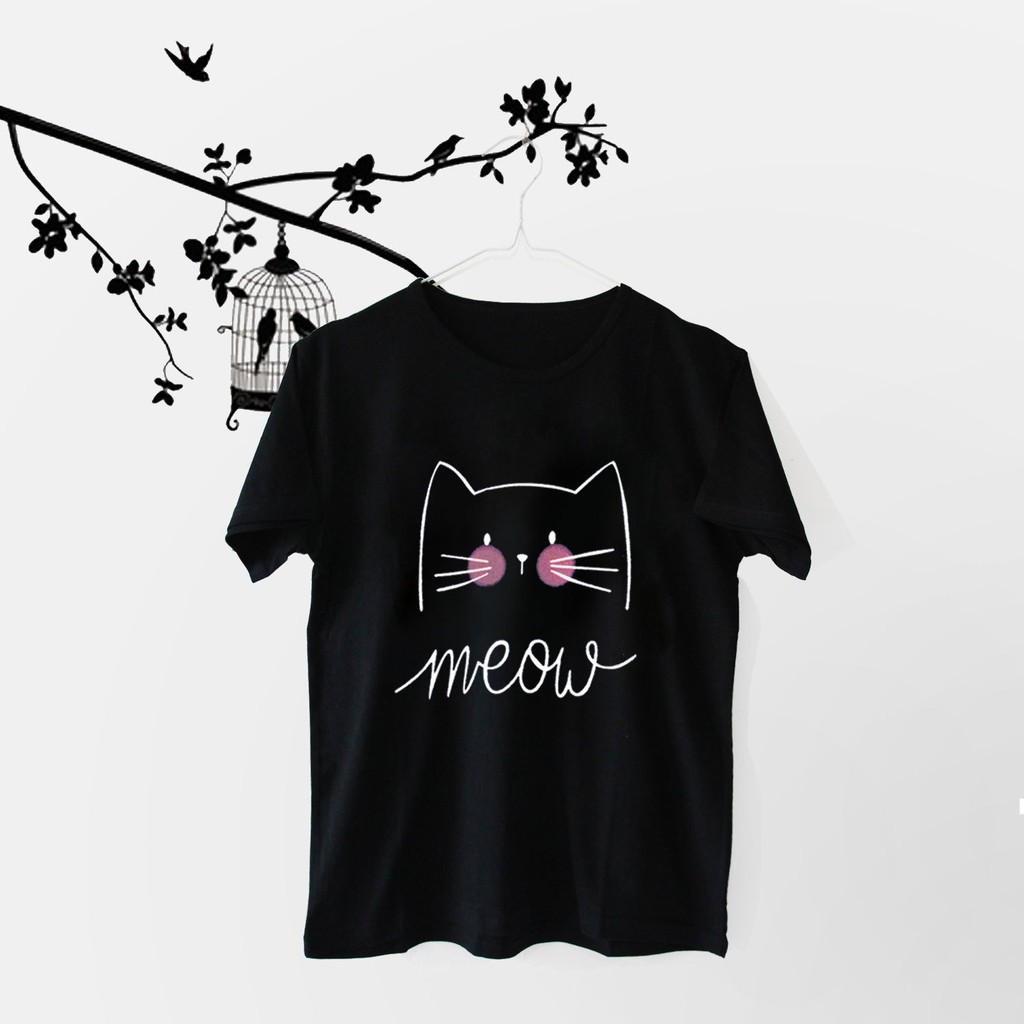 Kaos Kekinian Ask Kaos Wanita Lengan Pendek Meow Warna Hitam Kaos Distro Sd Tshirt Baju Shopee Indonesia