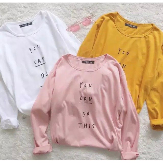 Kaos Wanita You Can Do This Lengan Panjang Duteonlineshop Putih Shopee Indonesia