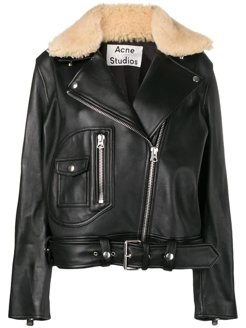 Shearling Collar Leather Biker Jacket Acne Studios Matchesfashion Au