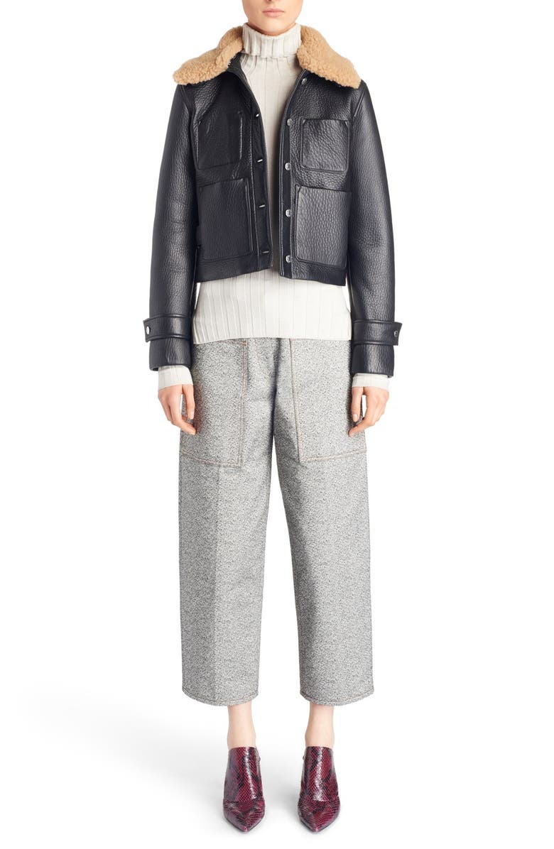 Acne Studios Felipa Lambskin Leather Jacket With Removable Genuine Shearling Collar Nordstrom