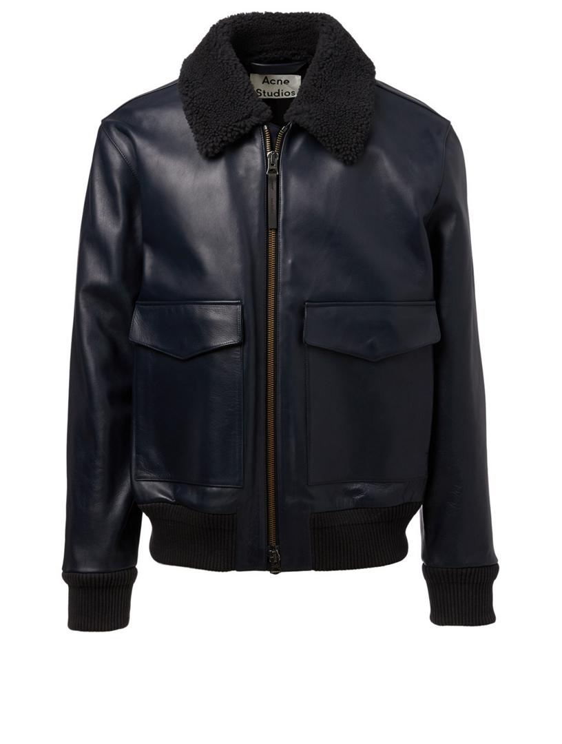 Acne Studios Leather Aviator Jacket With Shearling Collar Holt Renfrew Canada