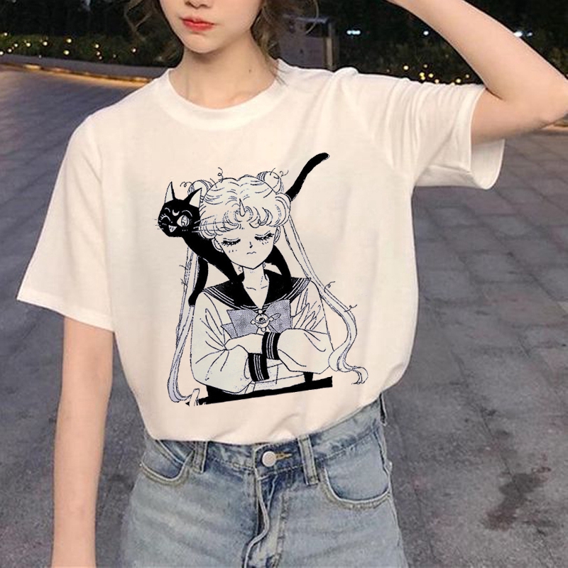 Kaos T Shirt Desain Anime Oversize Sailor Moon Warna Putih Untuk Wanita Shopee Indonesia