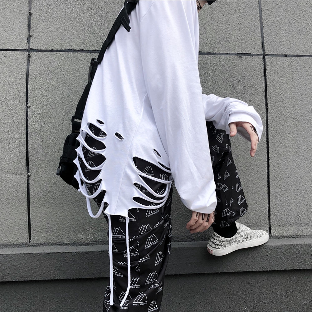 Kaos Lengan Panjang Model Oversize Aksen Sobek Warna Putih Untuk Wanita Shopee Indonesia