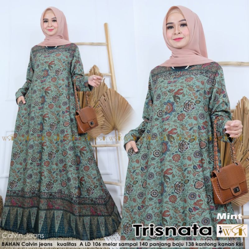 Trisnata Gamis Motif Bunga Bahan Calvin Jeans Ld 106 Melar Smpe 140 Orisolo Shopee Indonesia