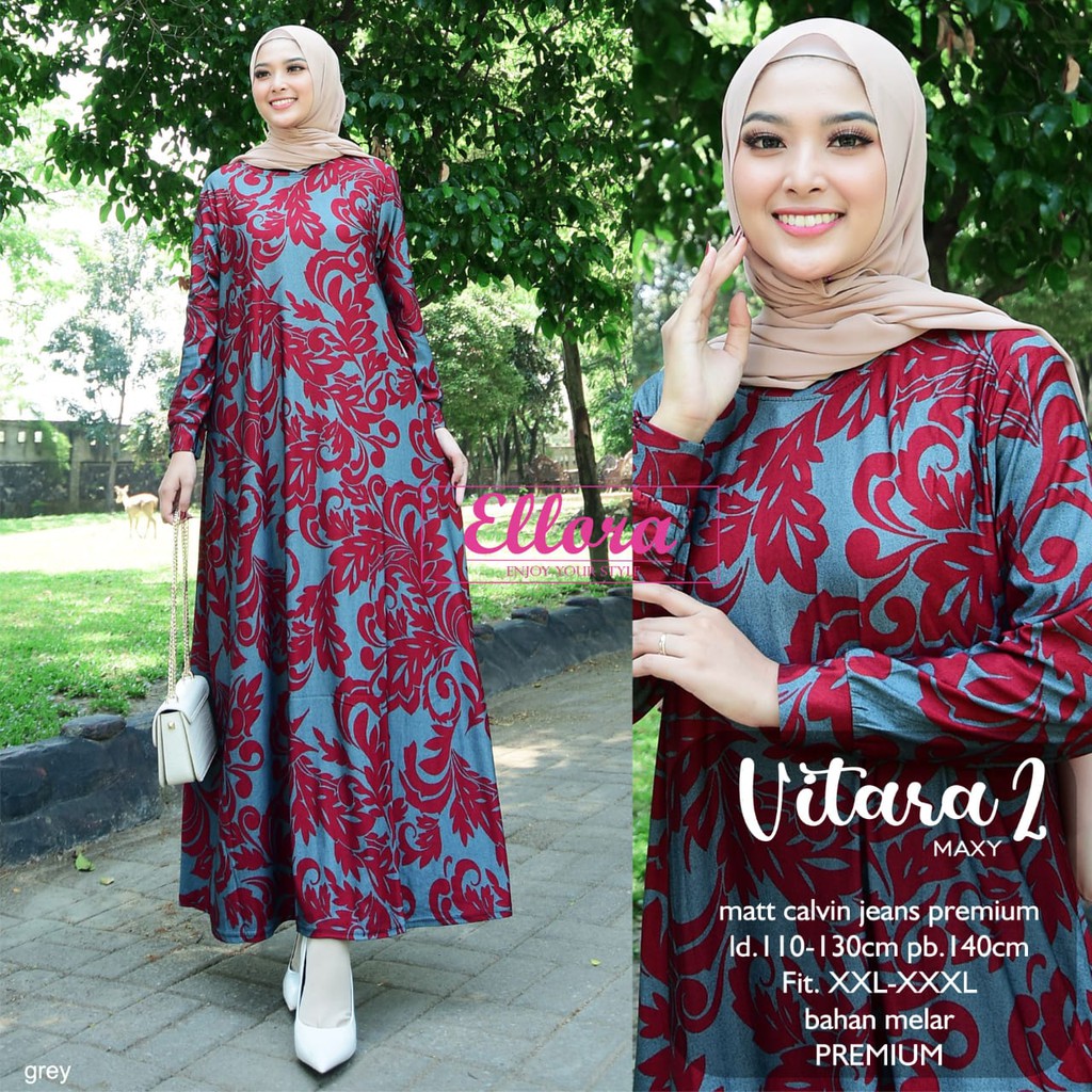 Vitara 2 Maxy Gamis Dress Bahan Calvin Jeans Premium By Ellora Shopee Indonesia