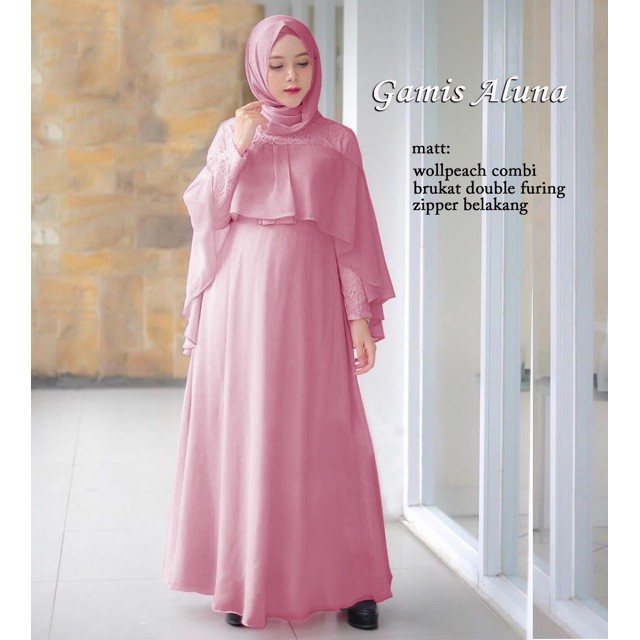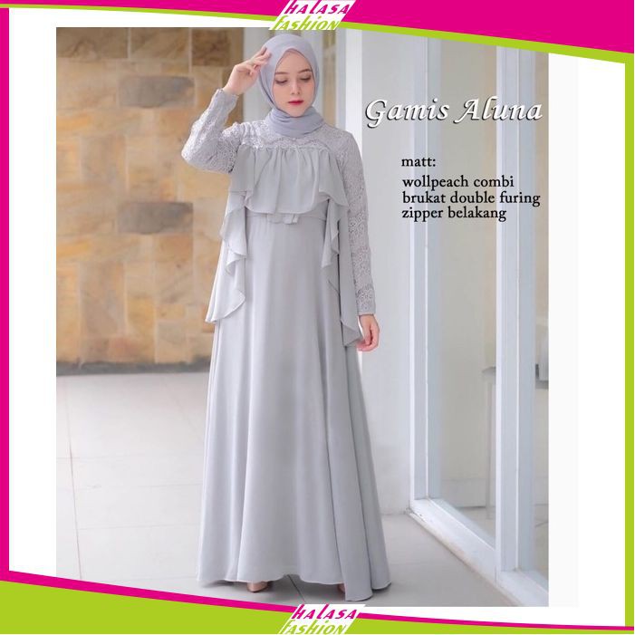 Hf 3330639 Maxi Aluna Dress Gamis Sabrina Wollpeach Kombi Brukat Murah Shopee Indonesia