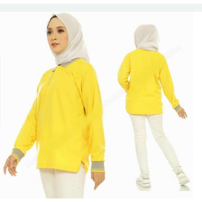Kaos Kerah Perempuan Kuning Lengan Panjang Polo Panjang Wanita Polo Hijab Premium Shopee Indonesia