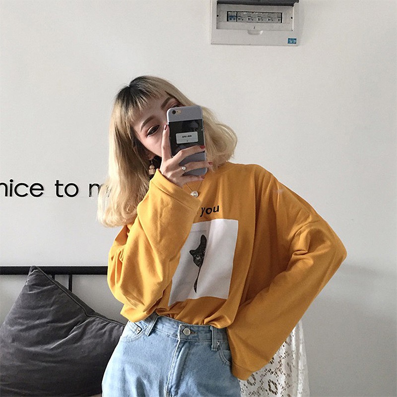 Kaos Lengan Panjang Longgar Cetak Wanita Korea Shopee Indonesia