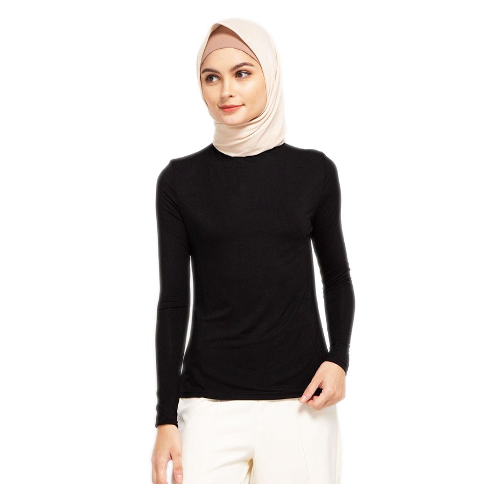 S Xxxl Baju Kaos Polos Muslimah Wanita Atasan Hitam Panjang Syar I Baju Olah Raga Seraga Shopee Indonesia