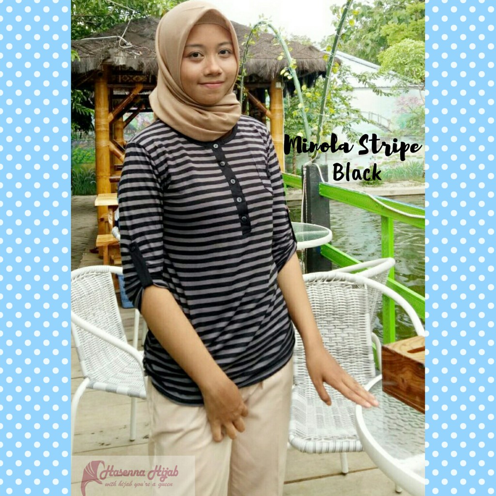 Baju Atasan Wanita Motif Garis Polos Minola Kancing Depan Lengan Panjang Shopee Indonesia