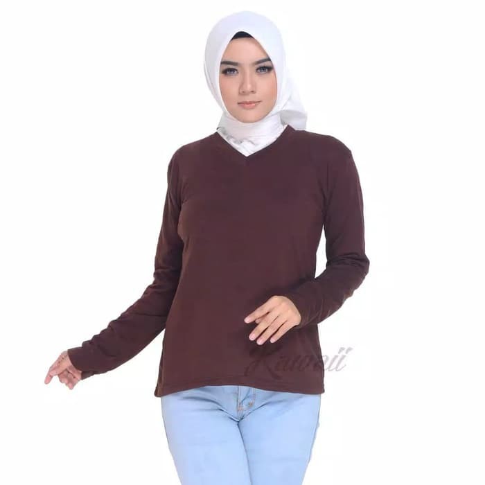 Jual Kaos Wanita Lengan Panjang Baju Atasan Kaos Kaos Polos Vneck Original Di Lapak Millennia Fashion Bukalapak
